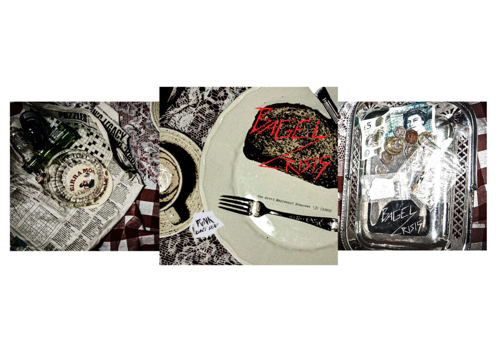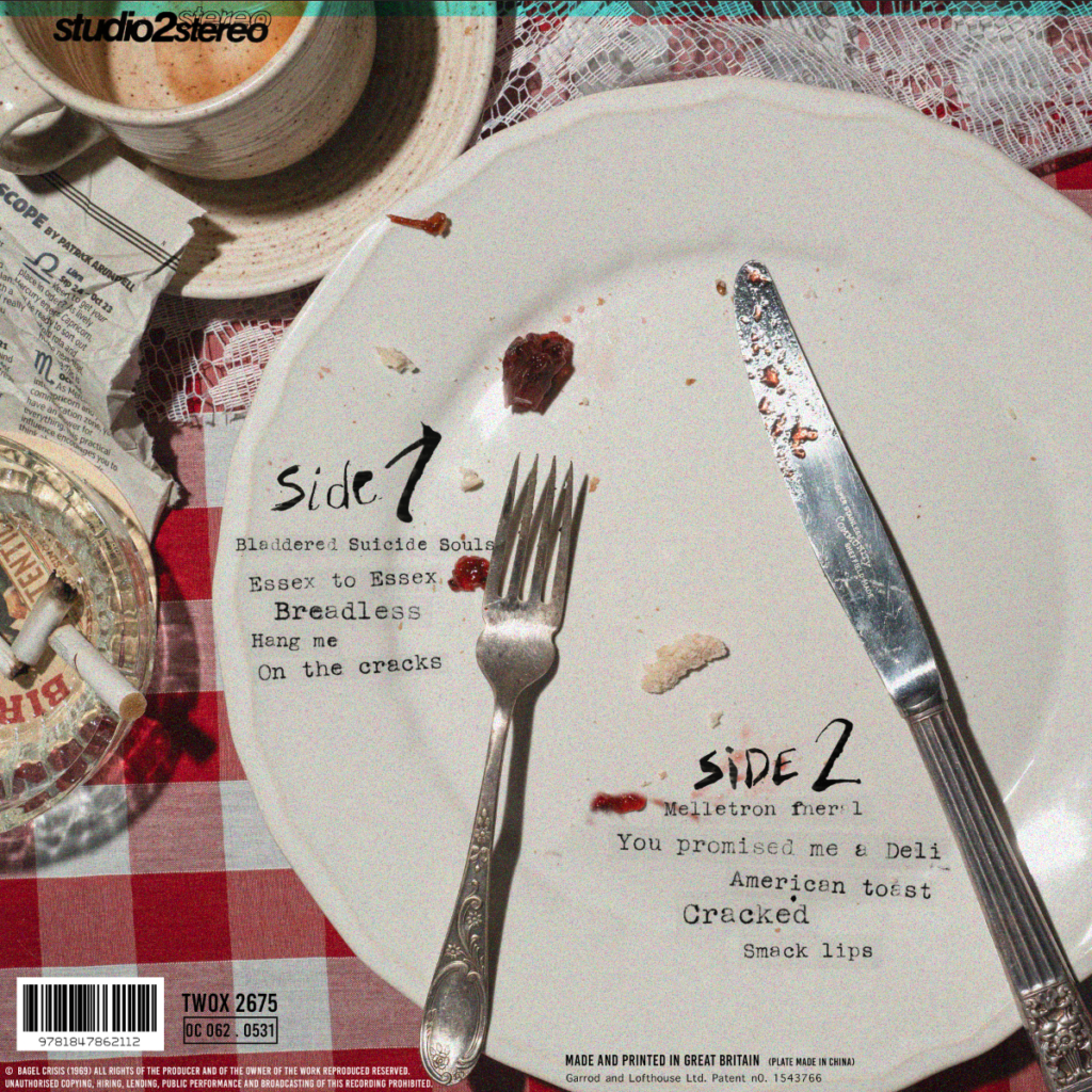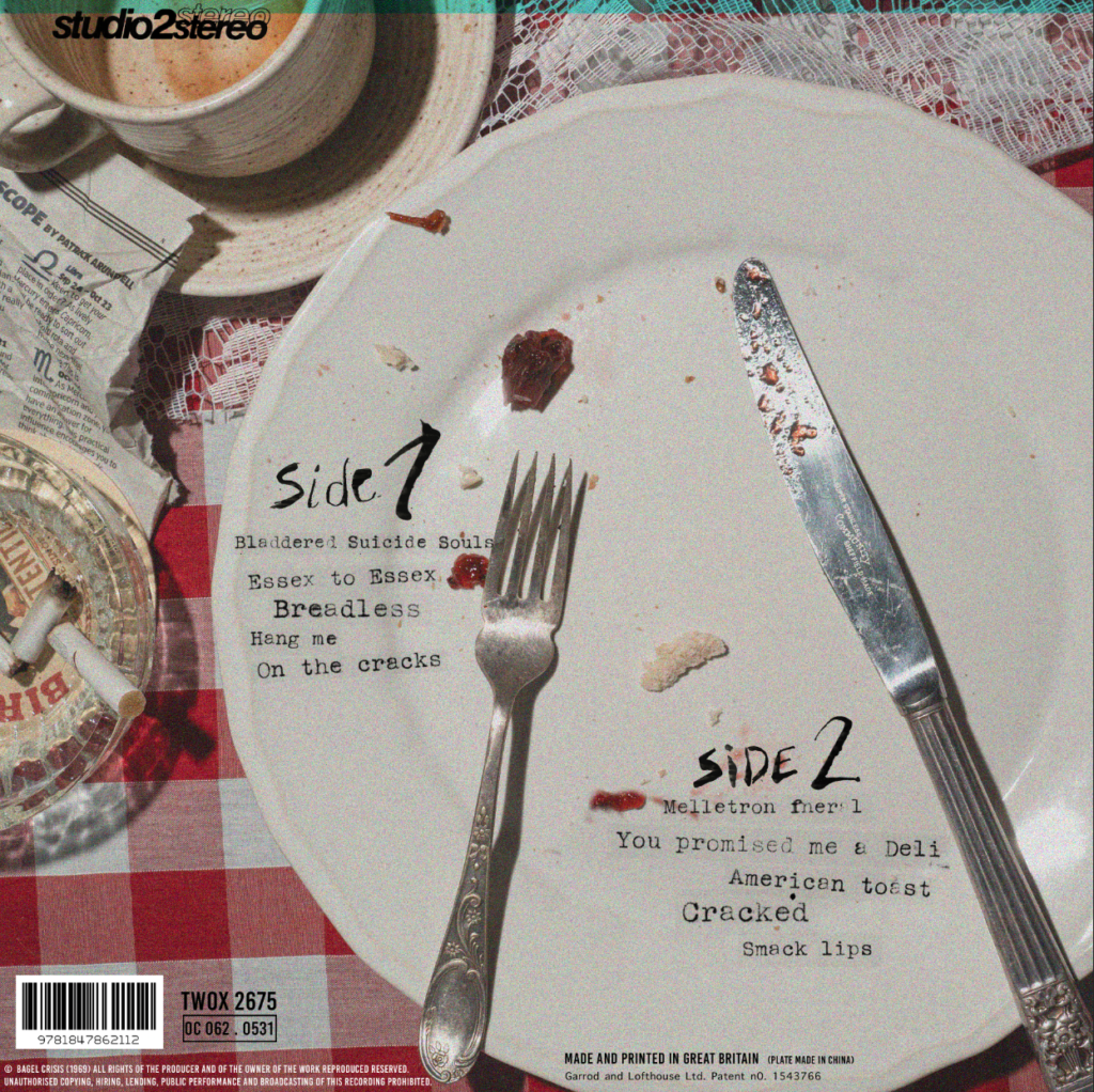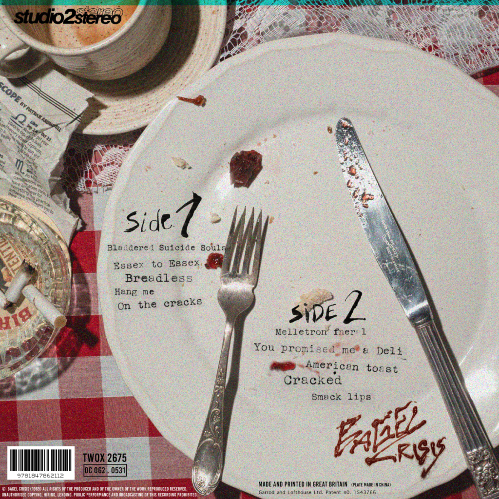 I was unsure about the placement of text, as I had quite a lot of empty space, I hadn’t added the logo as I was going to have it on the back instead of the front, but it worked a lot better when the band name was on the front. I decided to be quite obvious and have the bagel imagery for the LP.