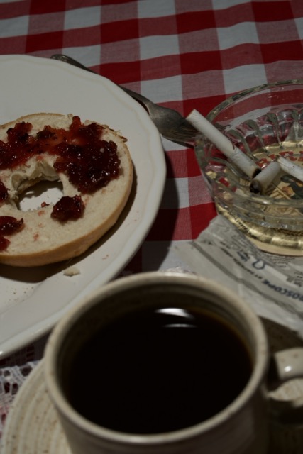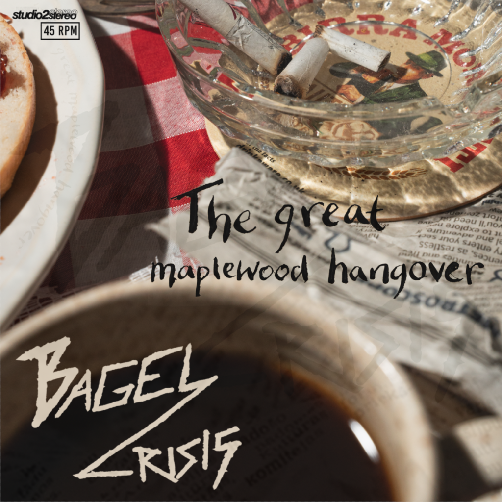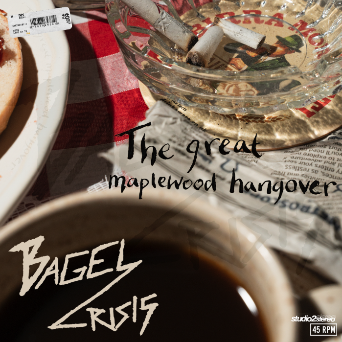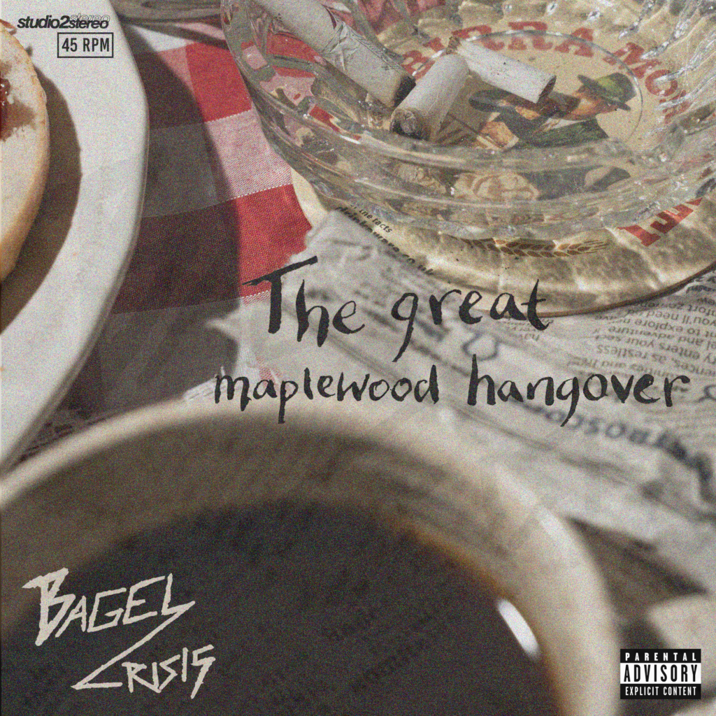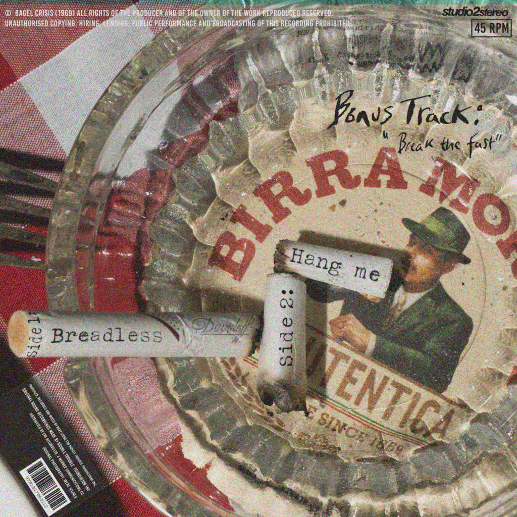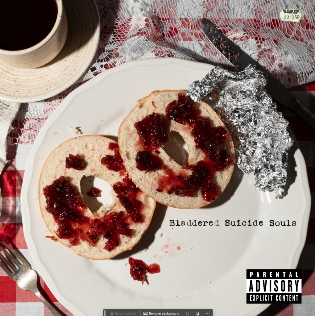 I was unsure about the placement of text, as I had quite a lot of empty space, I hadn’t added the logo as I was going to have it on the back instead of the front, but it worked a lot better when the band name was on the front. I decided to be quite obvious and have the bagel imagery for the LP.
