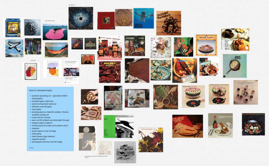 Figma board – Just putting some ideas down and some imagery, I want to do an arrangement for photography rather than making something as such to try recreate how it would have been on their night out.