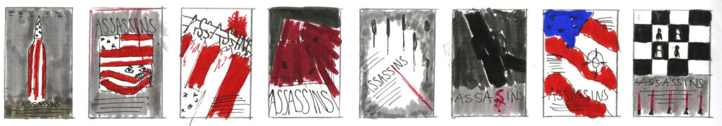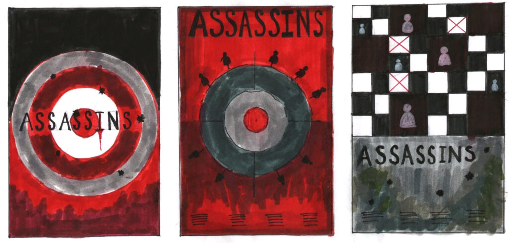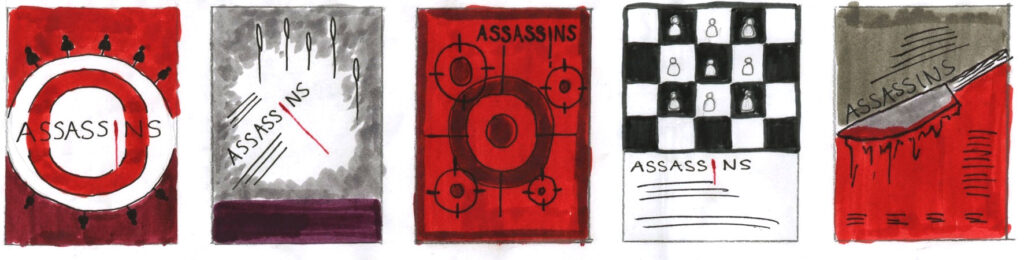 Working on A3 layout sheets you are asked to generate at least 40 different thumbnail ideas (50-60mm tall ) for a portrait format theatre poster. select five of your ideas and subject them to thorough refinement and development (at the same scale as previously). Selecting five to further develop and then the best three of the five and work up to detailed client visuals.