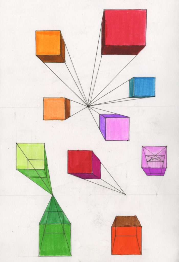 Developing drawing and visualising skills. Using perspective knowledge to sketch